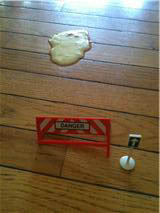 In the meantime...here are some things happening this week. (I apologize that these things were taken on my camera phone...it's handy, people.) Here is a picture from a few days ago. Sawyer was playing matchbox cars in the kitchen when Chopper (the dog) decided to hurl on the floor. (It happens.) Sawyer kept on playing, didn't skip a beat, and said, "Well, this calls for a road closure!!"